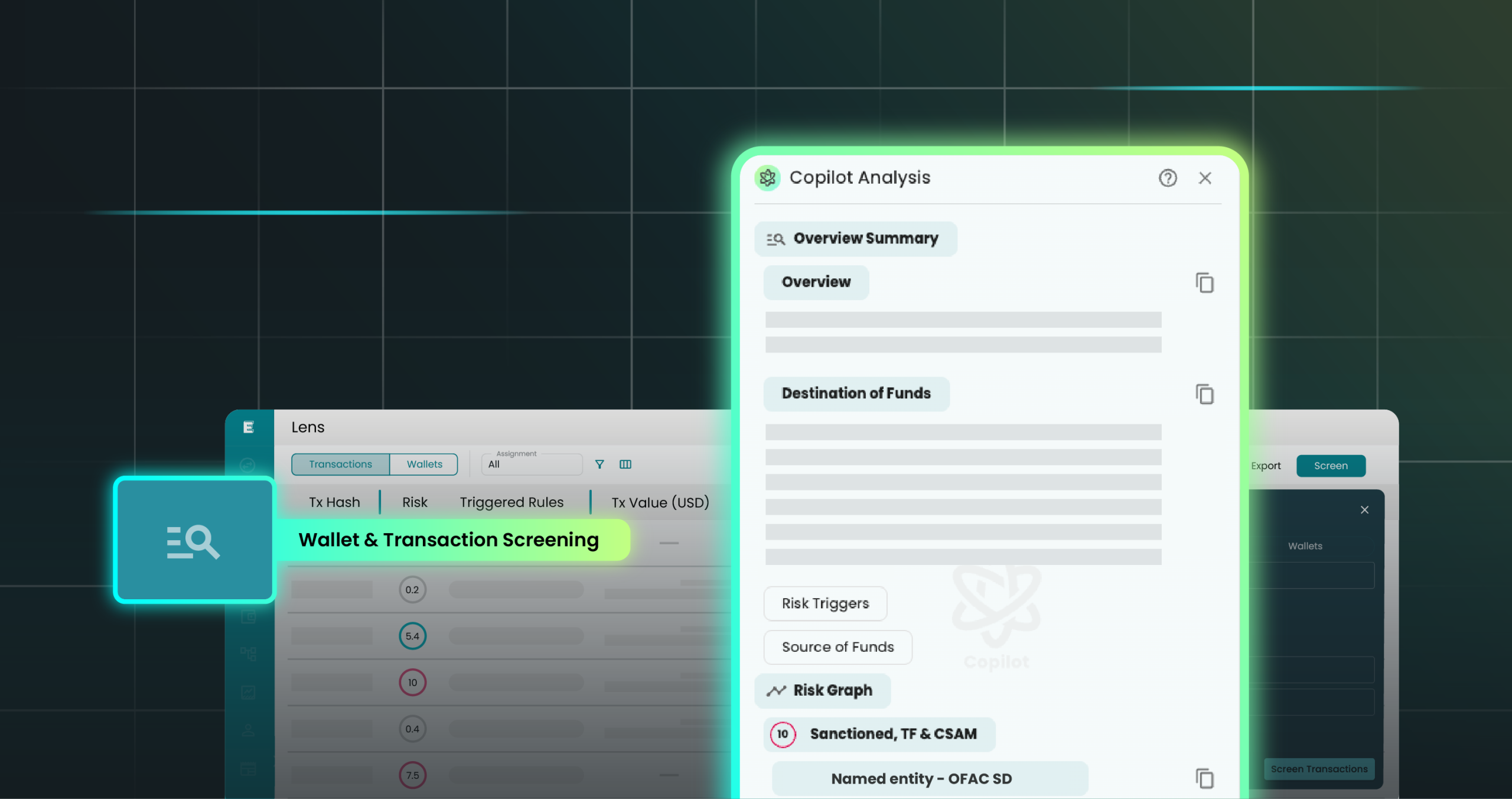 This evolution of Lens brings wallet and transaction risk screening together in a single interface. Instead of moving between applications to review, triage, escalate and resolve, teams can now handle the critical path from initial alert through to a confident decision in one interface.